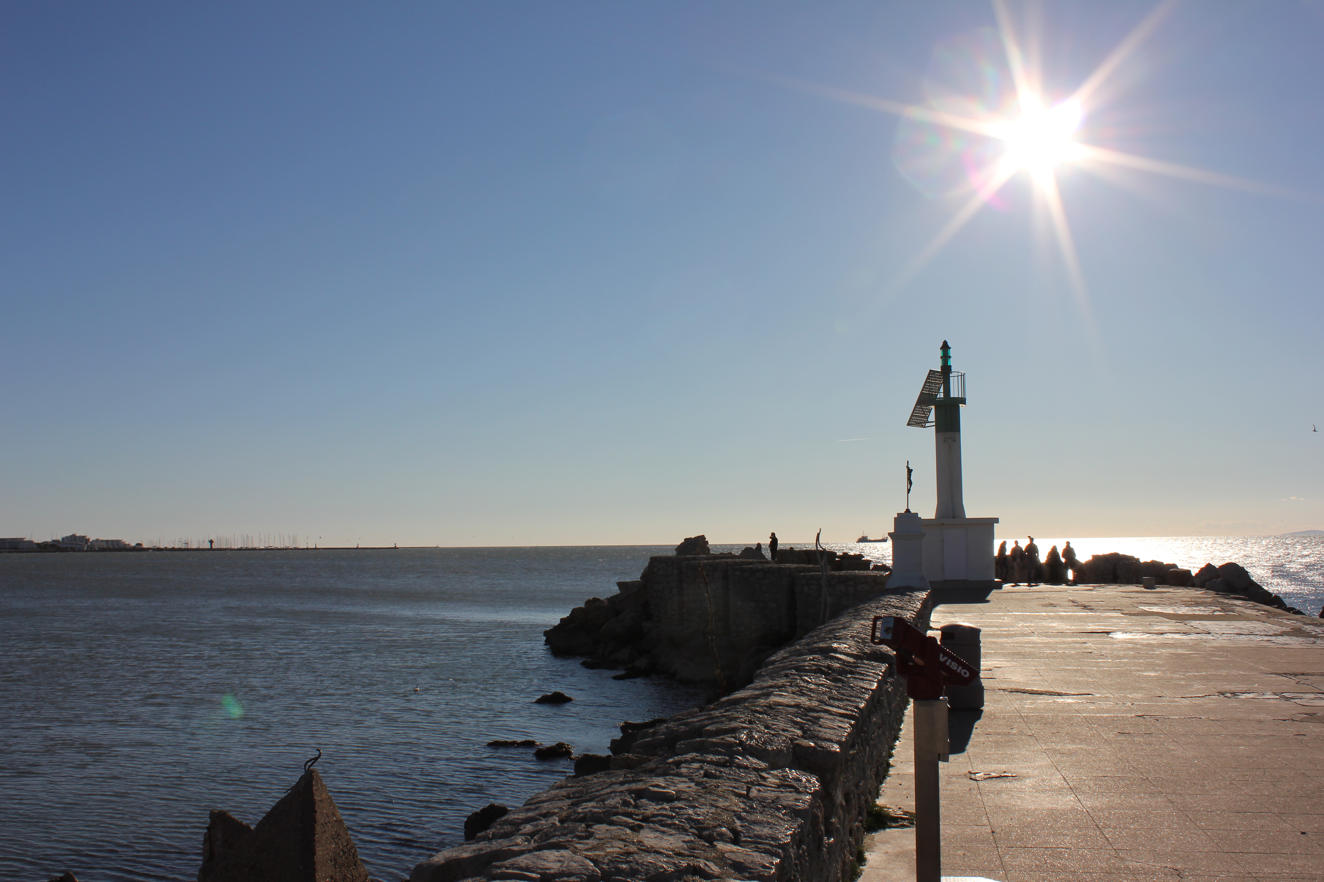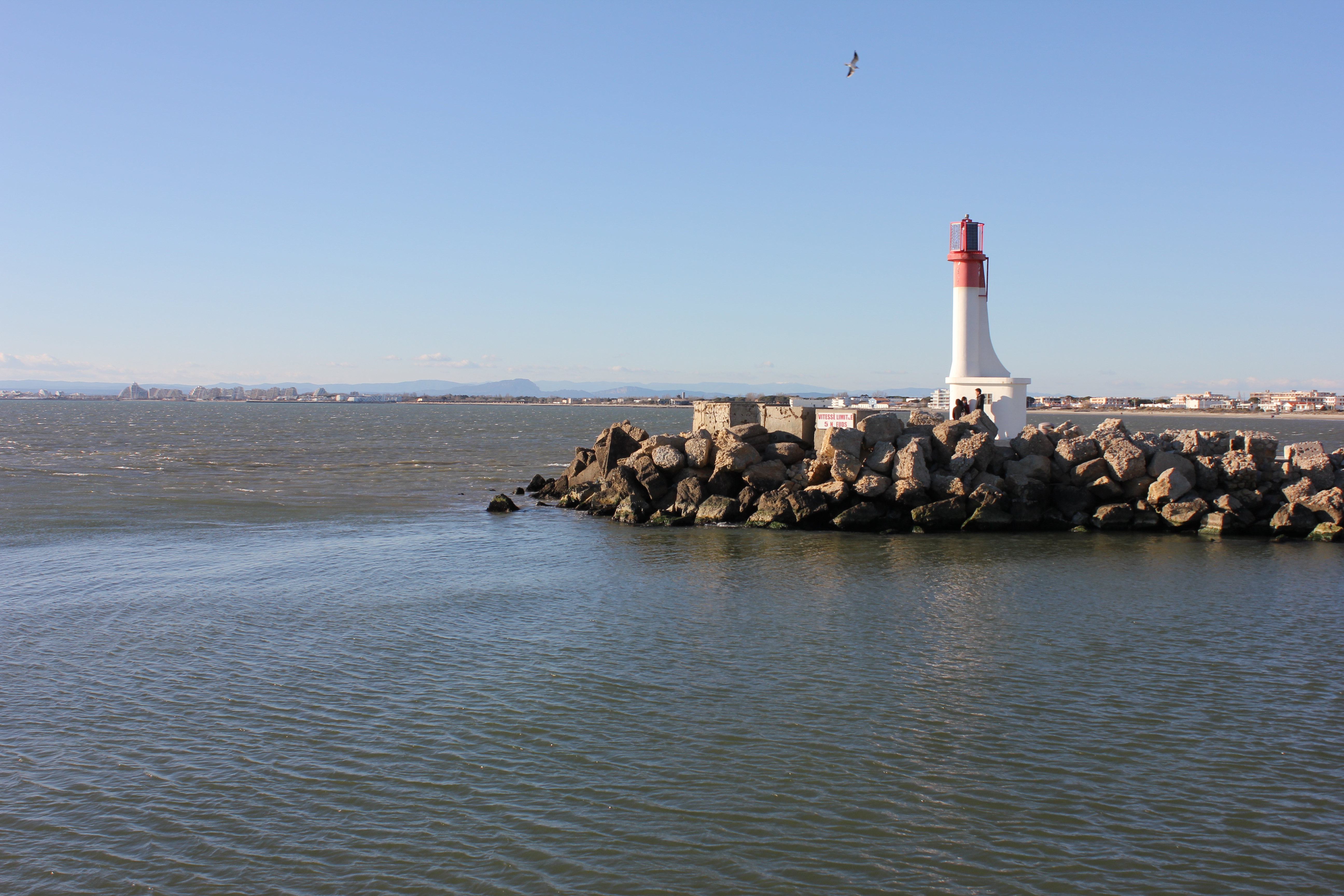Because of the central canal called the Chenal Maritime, the town is divided in two. There are some shops, restaurants and bars as well as kind of spanish-style church and ‘Maison du Dauphin’ located in the town. The canal divided Le Grau-du-Roi into the Rive Droite and the Rive Gauche. The first one with its beaches and the fishing harbour is on an inlet from the canal. The second one is accompanied with the its own beaches (among which the most popular is Seaquarium) and the large Marina of Le-Grau-du-Roi called Port Camargue. Seaquarium is actually one the most popular attraction at Le Grau-de-Roi . It is a a place where you can see a many types of fish, sea creatures, seals and rayfish. In the requinarium you can also learn about sharks and see 25 different species of the shark itself. I haven’t been there but I think I would enjoy it. There are two piers which meet the sea and at the end of each of these is a lighthouse.
