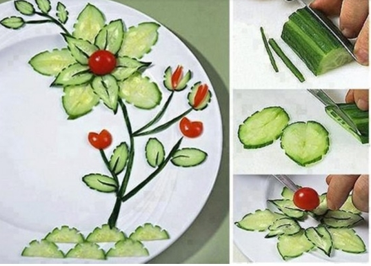 So we have over 50 ideas, I love them all but mostly… Ice Cream Chocolates Pots filled with ice cream scoops and if i want to go for a healthier option – there is a cucumber decorated plate in a nice shape of flower to want you eat this cucumber 😉