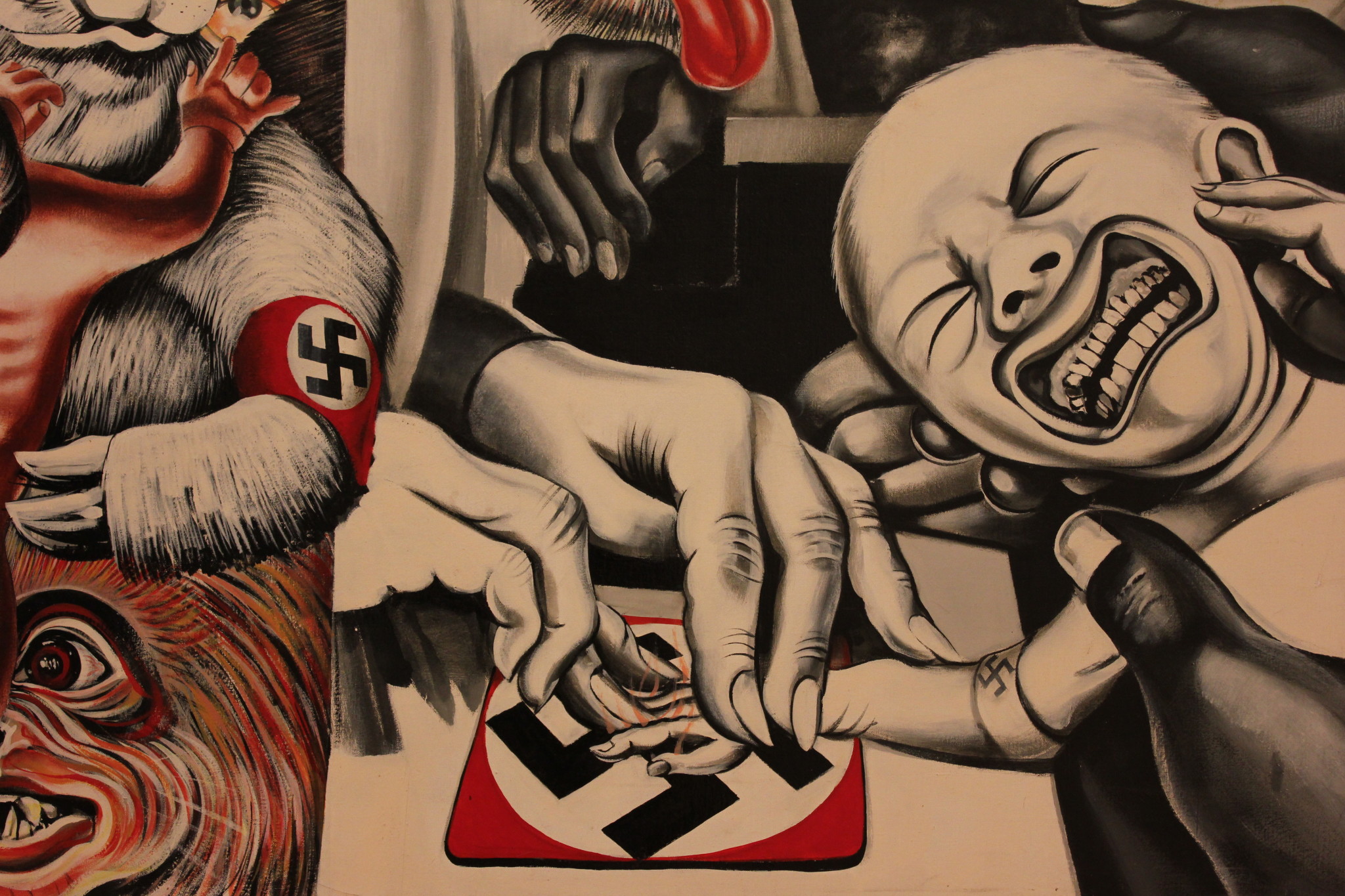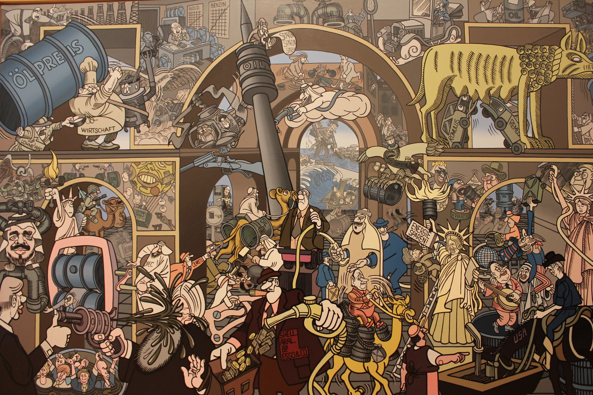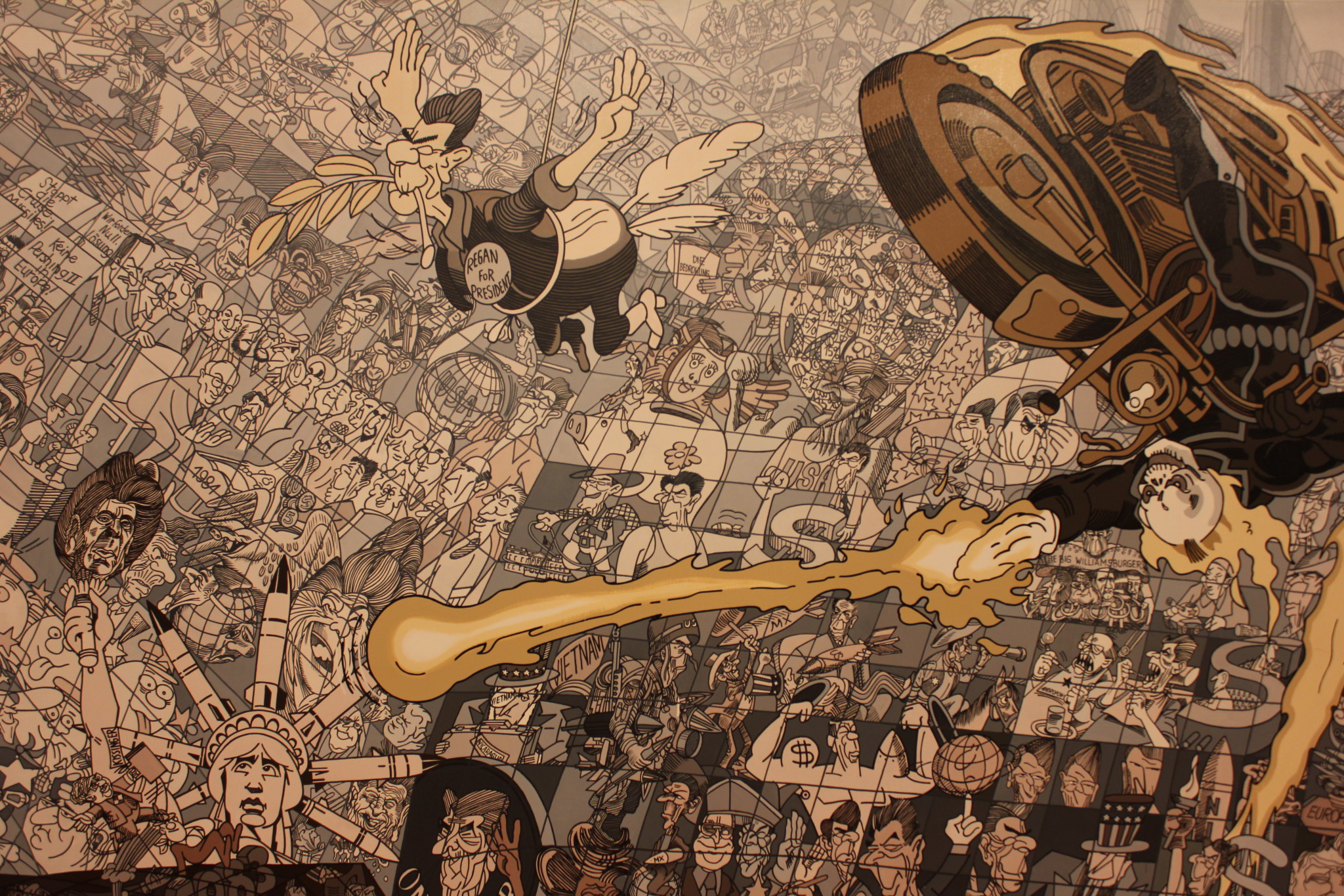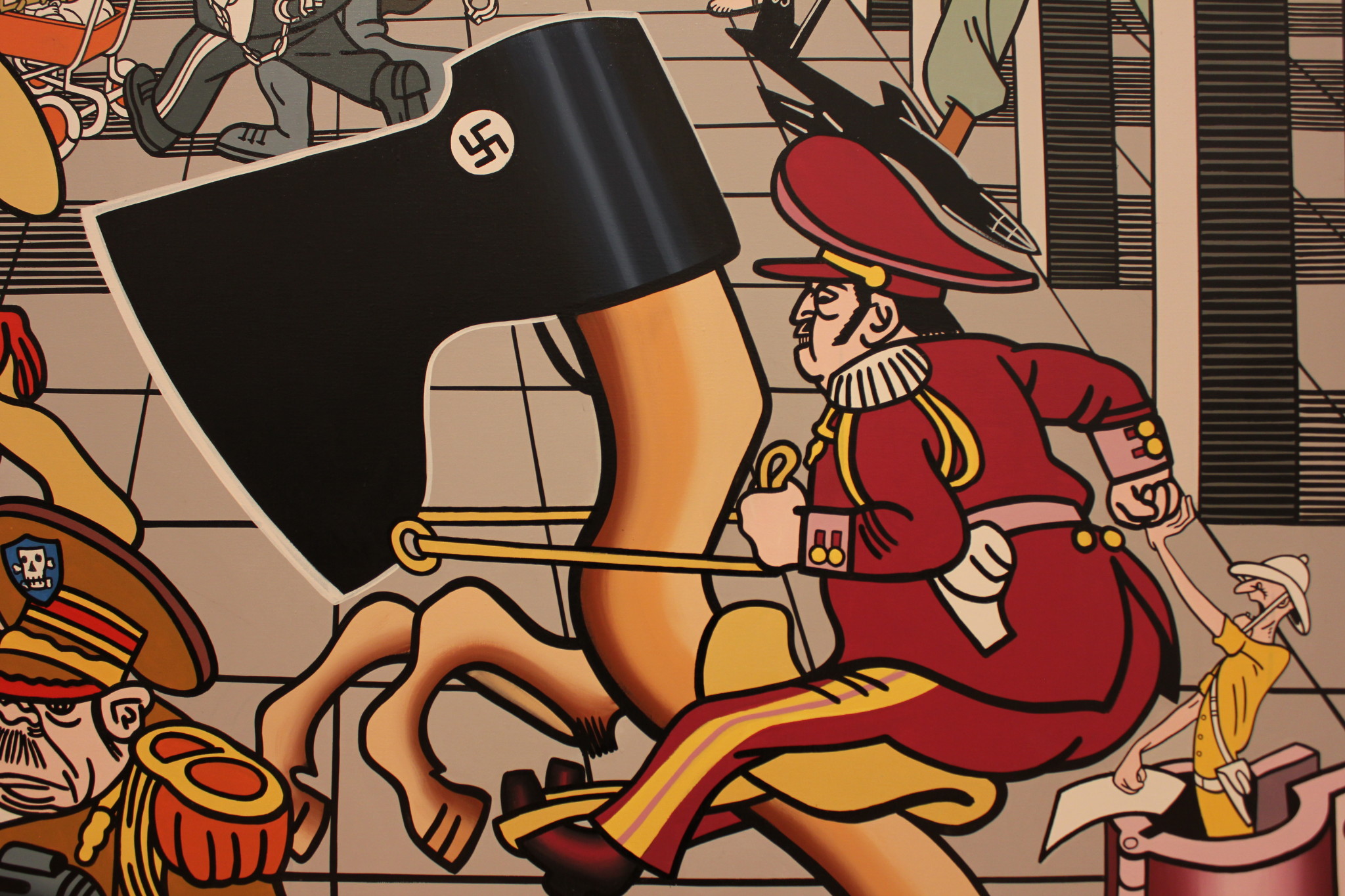 Again, as it comes to describe the work of Erro I don’t know where to start. The landscapes in his work are a constantly changing kaleidoscope of images. There are paintings which show the beauty and the horror, the paradise and visions of fear, the innocence and the cruelty. With this same passion he was painting cartoon characters like Donald Duck, Daisy, Chip & Dale, and other Walt Disney creations and autocratic despots like Adolf Hitler, Saddam Hussein, the Chinese leader Mao Zedong to name a few. Weapons, violence and sexuality are indispensable elements of his paintings.