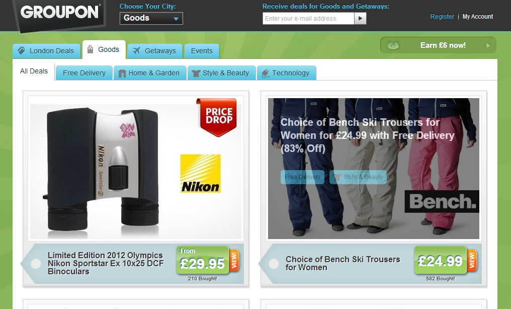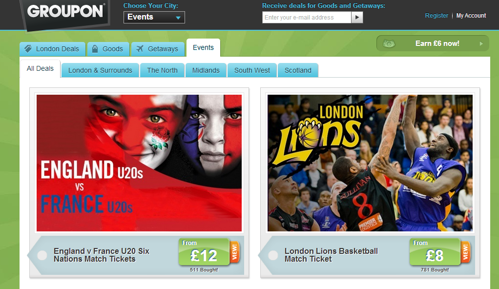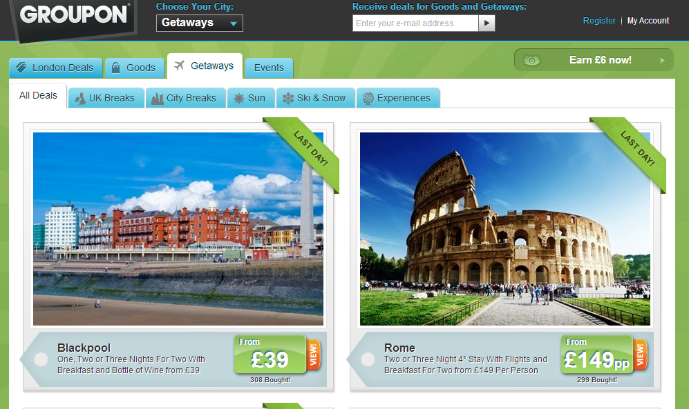 Register with Groupon.co.uk to get Local Deals, Goods and Getaways into your Inbox daily.